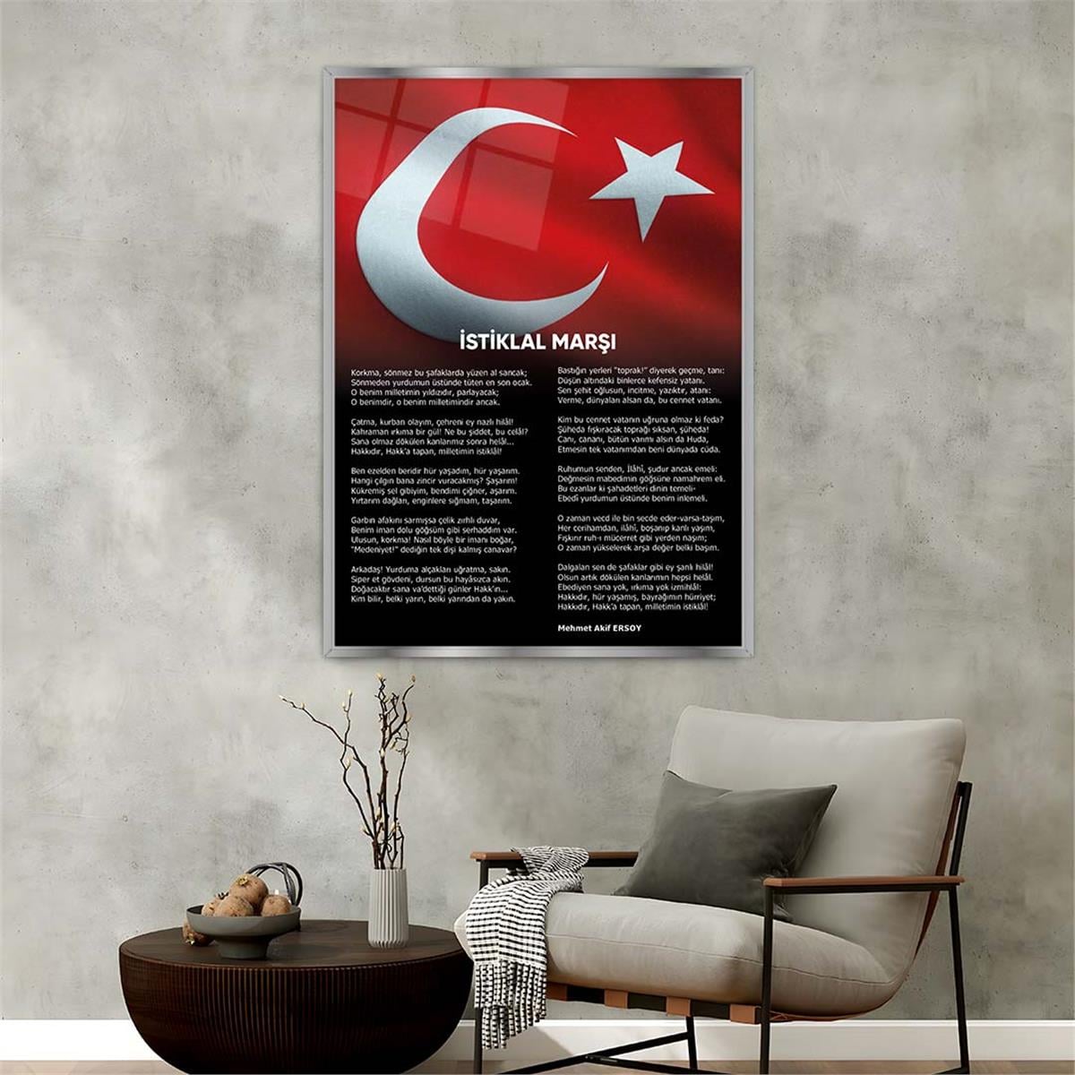 لوحة زجاجية وطني مع اطار ألمنيوم (MÇDVAT040)