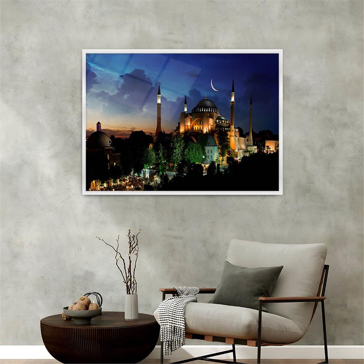 • Aluminum-framed custom hanging apparatus tempered glass wall art