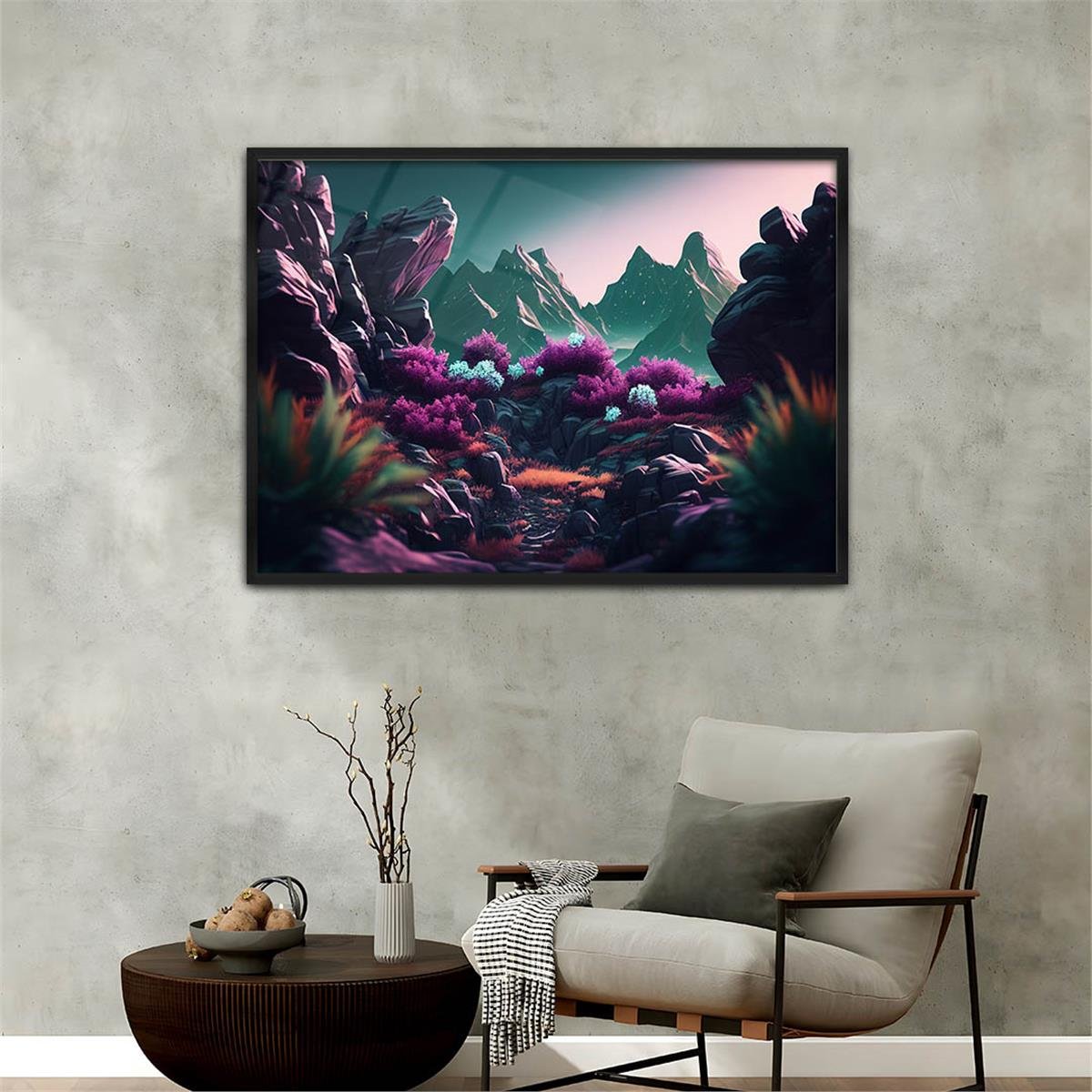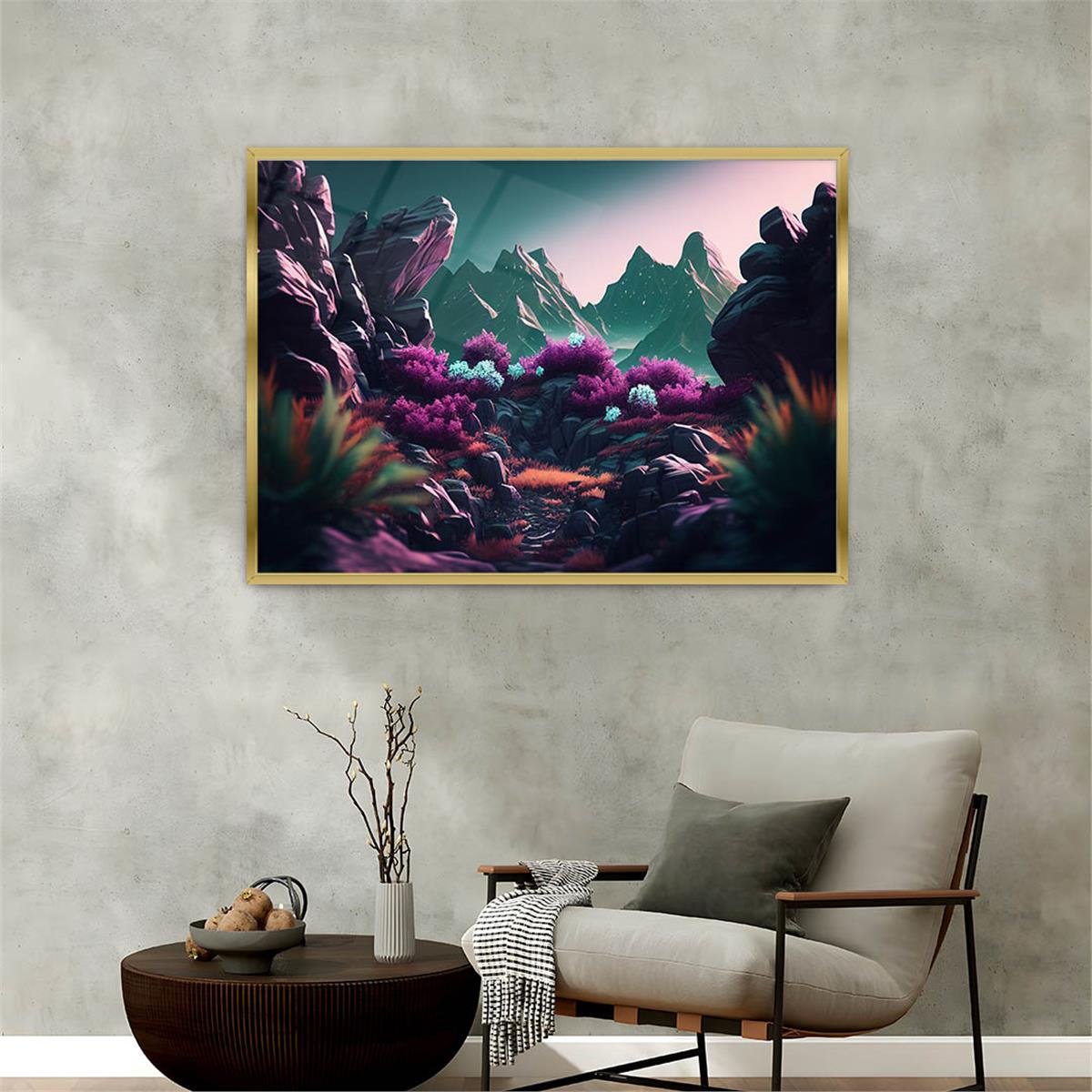 Aluminum-Framed Natured-Themed Tempered Glass Wall Art 067