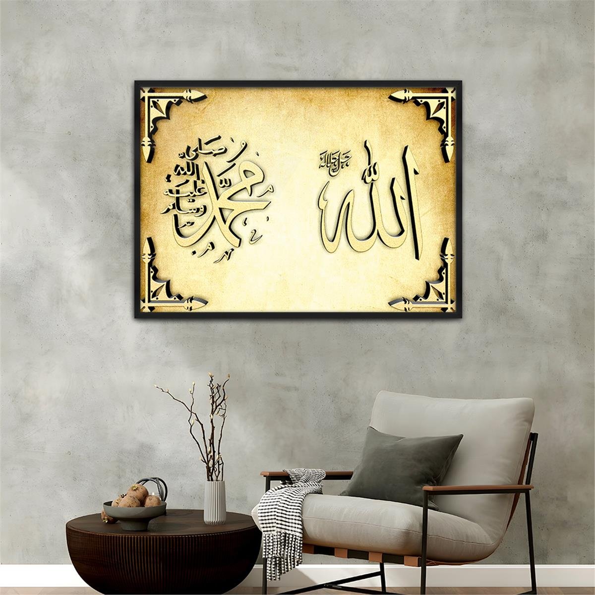Tableau en verre à thème religieux avec cadre en aluminium 074 (MÇYDİN074)
